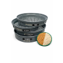 Este conjunto inclui peneiras circulares fabricadas em plástico resistente, com um diâmetro de 30,5cm, apresentando um design robusto na cor cinza. A chapa perfurada de cada peneira é zincada, proporcionando durabilidade e resistência superiores ao longo do processo de classificação.