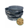 Este conjunto é composto por peneiras circulares fabricadas em plástico resistente, cada uma com um diâmetro de 30,5cm, apresentando um design robusto na cor cinza. A chapa perfurada de cada peneira é zincada, assegurando uma maior durabilidade e resistência durante o processo de análise granulométrica.